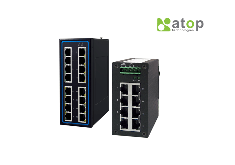Industrial Standard Unmanaged and Managed Ethernet Switches, Din Rail & Rack Mounted, DC Powerd 6~48 VDC (Atop). Warranty (5 Years).