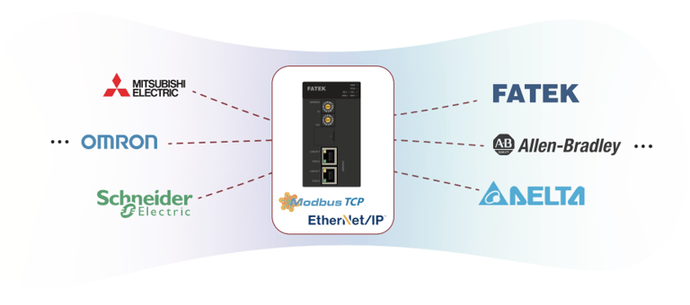 Effortless Switching Between Multiple Brands FATEK’s Remote I/O modules support a wide range of mainstream PLC brands, allowing users to easily switch between Modbus TCP and Ethernet/IP protocols without needing hardware replacements. This seamless integration ensures flexibility, allowing businesses to meet diverse communication requirements without disrupting existing systems.